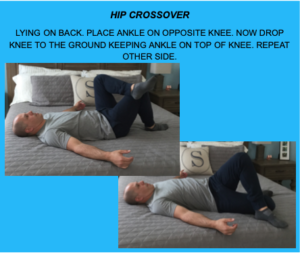 HOW: LYING ON BACK. PLACE ANKLE ON OPPOSITE KNEE. NOW DROP KNEE TO THE GROUND KEEPING ANKLE ON TOP OF KNEE. REPEAT OTHER SIDE.