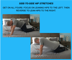HOW: GET ON ALL FOURS. FOCUS ON LEANING HIPS TO THE LEFT. THEN REVERSE TO LEAN HIPS TO THE RIGHT.