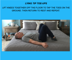 HOW: LIFT KNEES TOGETHER OFF THE FLOOR TO TAP THE TOES ON THE GROUND. *THIS IS NOT RAISING THE HEELS UP WHILE TOES REMAIN ON THE GROUND. ACTUALLY FOCUS ON USING YOUR MUSCLES TO LIFT YOUR KNEES UP A FEW INCHES.