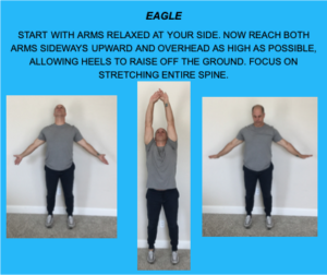 HOW: START WITH ARMS RELAXED AT YOUR SIDE. NOW REACH BOTH ARMS SIDEWAYS UPWARD AND OVERHEAD AS HIGH AS POSSIBLE, ALLOWING HEELS TO RAISE OFF THE GROUND. FOCUS ON STRETCHING ENTIRE SPINE.